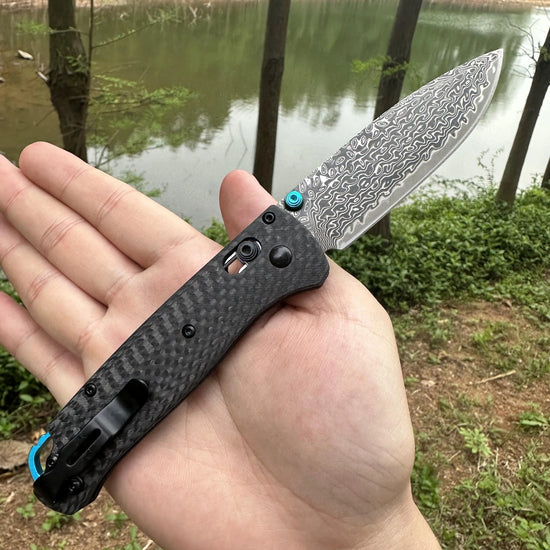 Absolutely insane sharpness! Cuts through rope, cardboard, and even paper effortlessly. The Damascus pattern looks incredible, and the carbon fiber handle feels perfect in hand. Worth every penny!